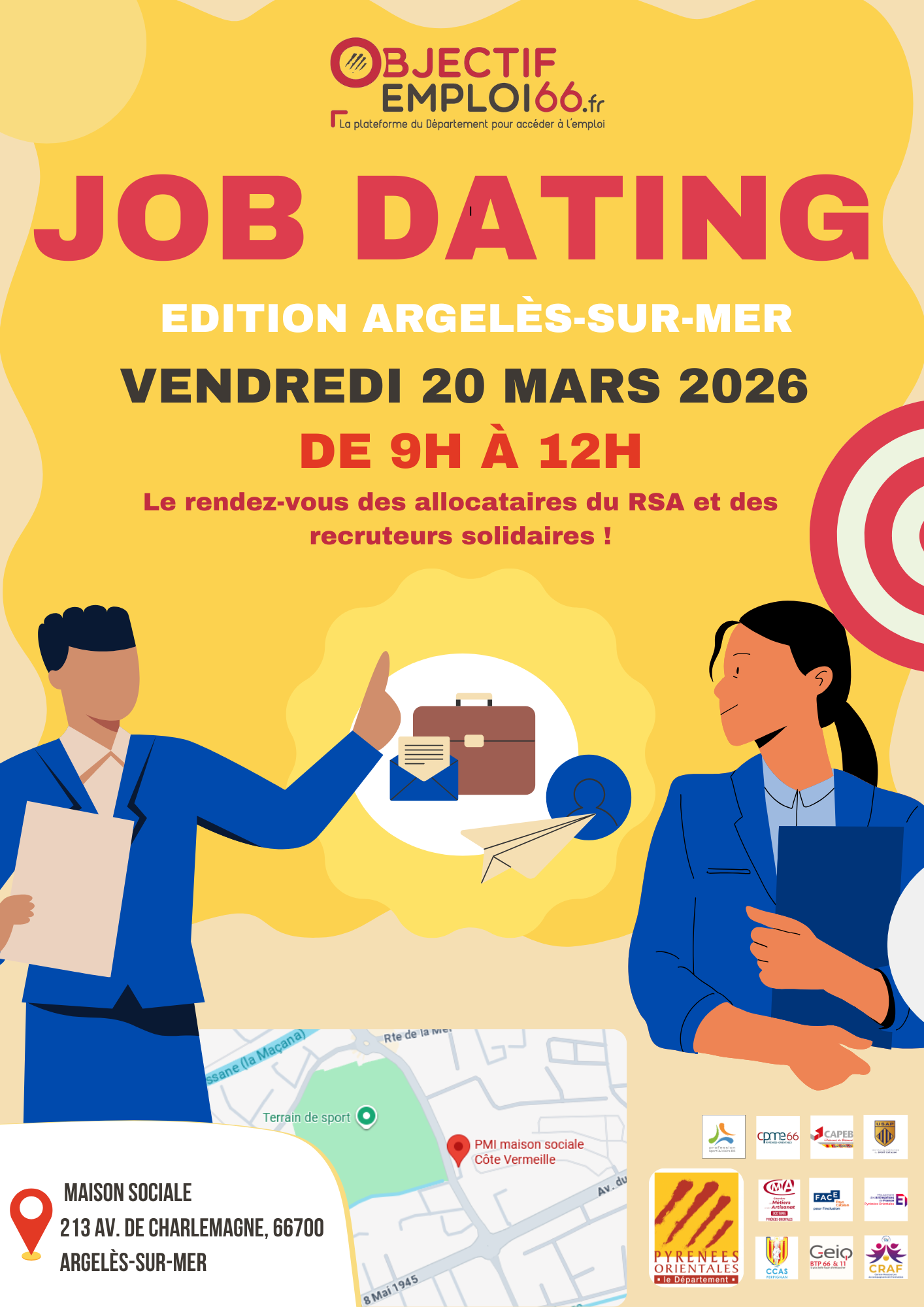 Nous vous attendons vendredi 20 mars 2026 de 9h00 à 12h00à l’adresse ci-dessous : Maison Sociale de Proximité située 213 Av. de Charlemagne 66700 Argelès-sur-Mer Pour ce Job Dating, 15 entreprises de la côte Vermeille seront présentes et plus de 50 postes seront à pourvoir dans différents secteurs d’activité.L’occasion idéale pour échanger directement avec des […]
